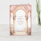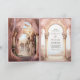 Amaze your guests with this lovely fairy tale theme wedding invite featuring beautiful curtains and majestic arches with modern typography.