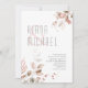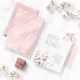 Delicate, foliage arrangements with small flower accents in soft, dreamy shades of cream, taupe and rose gold with splashes of glitter, and unique design layouts make this an exciting collection, especially for spring weddings. The wedding invitation shown here features lush foliage borders on the front face and a soft, rose gold watercolor texture on the back. View the collection link on this page to see all of the matching items in this beautiful design or search ID817 to see other pieces and color choices for this set.