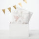 Delicate, foliage arrangements with small flower accents in soft, dreamy shades of cream, taupe and rose gold with splashes of glitter, and unique design layouts make this an exciting collection, especially for spring weddings. The wedding favor bag shown here features lush foliage around a rose gold, diamond-shaped frame. Add your personal message, names and wedding date using the provided template. View the collection link on this page to see all of the matching items in this beautiful design or search ID817 to see other pieces and color choices for this set.
