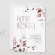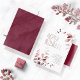 Delicate, foliage arrangements with small flower accents in soft, dreamy shades of cream, taupe and rose with splashes of burgundy glitter and unique design layouts make this an exciting collection, especially for autumn weddings. The wedding invitation shown here features lush foliage borders on the front face and a deep burgundy, watercolor texture on the back. View the collection link on this page to see all of the matching items in this beautiful design or search ID817 to see other pieces and color choices for this set.