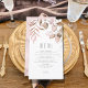 Delicate, foliage arrangements with small flower accents in soft, dreamy shades of cream, taupe and rose gold with splashes of glitter, and unique design layouts make this an exciting collection, especially for spring weddings. The wedding reception menu shown here features a lush foliage border on the top front and a soft, rose gold watercolor texture on the back. Add your menu selections, initials and wedding date using the provided template. View the collection link on this page to see all of the matching items in this beautiful design or search ID817 to see other pieces and color choices for this set.
