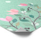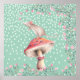 Adorable illustration of a tiny mouse, climing on a mushroom and smelling the flowers and blossoms into the air. In the backround white on green dotted backround. Wonderful design for adults and children. Made with love by UtArt.