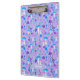 This custom clipboard is decorated with cute illustrated mushrooms and flowers in a dreamy purple and turquoise blue color palette.