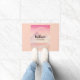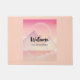 Welcome doormat with a lovely charming illustration. Pastel colors of pink and peach. Landscape scene with planets, mountains and clouds.