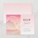RSVP card with a lovely charming illustration. Pastel colors of pink and peach. Landscape scene with planets, mountains and clouds.