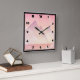 A clock with a lovely charming illustration. Pastel colors of pink and peach. Landscape scene with planets, mountains and clouds.