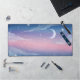 Bring the magic of a starlit evening to your workspace with this dreamy pastel night sky desk mat. Featuring a soft watercolor blend of pink, purple, and deep blue, this design is scattered with twinkling stars and a glowing crescent moon. Its ethereal and kawaii aesthetic makes it the perfect centerpiece for a cozy gaming setup or a creative home office. This durable desk pad provides a smooth, expansive surface for your mouse and keyboard while adding a touch of celestial wonder to your daily grind.