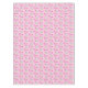 A tablecloth with a repeating pattern of a yummy pink cupcake with scrumptious swirls of pink frosting with a yellow cupcake holder. A raspberry with stem and leaves on top. Dreamy and delicious. Text says Yum in a fancy trendy font. Set on a pastel pink backdrop.