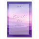 This wedding tabletop sign features a modern yet classic design with an ombre gradient background transitioning from deep purple to soft lavender and pink hues. The layout is clean and balanced, highlighting the elegant cursive script of "dessert bar" in the center, accompanied by the inviting message "PLEASE HELP YOURSELF" in simple serif font. The overall style exudes sophistication and whimsy, creating a welcoming atmosphere perfect for a casual yet refined dessert experience at your event.