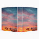 A heavenly snapshot of a tropical sunset with streaks of blues and pinks dancing across the sky along firey orange sun Ray's with a group of silhouetted palm trees. Inspirational dreamy bliss.