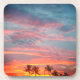 A heavenly snapshot of a tropical sunset with streaks of blues and pinks dancing across the sky along firey orange sunrays with a group of silhouetted palm trees. Inspirational dreamy bliss.