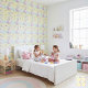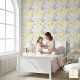 This is the ideal wallpaper to turn any space into a serene and luminous dream kingdom! Featuring a delicate repeating design of an adorable unicorn in pastel pink and blue, it soars among soft clouds, golden crescent moons, and twinkling stars against a light and welcoming yellow background.