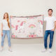 Girly Unicorn All Seasons Throw Blanket featuring dreamy, cute Unicorn dreamland with flowers, rainbows and clouds in pale pastel colors. Personalize name (placed in the cloud) or delete, if you prefer.