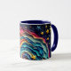 Sip your favorite drink while gazing into the cosmos with this stunning galaxy-inspired mug. Featuring a mesmerizing spiral of vibrant blues, fiery oranges, and deep purples, this design resembles a beautifully layered papier-mâché nebula. Scattered golden stars add a celestial charm, making this mug perfect for space lovers, dreamers, and artists. Crafted for comfort and durability, it's ideal for coffee, tea, or any cosmic concoction!