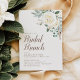 Bridal brunch invitations featuring dreamy white winter floral and leaves.