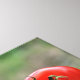 Drei rote Tomaten auf einer weißen Mauer vor grüner Natur