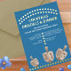 These Hanukkah dinner party invitations are made special with accents of real gold foil printing and your personalized text. Designed on a background of rich medium dark blue, the main theme is three rustic dreidels on the bottom in a faux oak wood graphic above a row of real foil polka dots. The theme of dots continues on these personalized Hanukkah party invites with a double row at the top of the design and a single row down the center. COCKTAILS DREIDELS & DINNER in a simple block font is also printed in real gold foil and can be edited by you if you wish. The remainder of the text on these Chanukah invitations is in white and give you three areas to personalize with your party details. Each invitation card reverses to a light sky blue with deep blue polka dots.