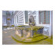 The head of a lion flanked by the heads of two honking geese adorn a fountain in the outdoor courtyard of the Dresden Castle, Germany. The fountain appears to be a watering trough for horses. Large chess pieces are situated nearby.