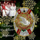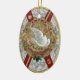 This Old World European-style ornament graces your holiday tree with royal style. The background image of intricately patterned Normandy lace wrapped with princely military-style uniform ribbon sashes, the image of a gold foil paper Dresden wreath, bejeweled and with golden accents, and the Dove of Peace unite to create a charming and stately visual. This digital layered design was created by placing many individual adornments meticulously by hand (or mouse?). The reverse side is equally opulent. It is customizable with the year, a personalized greeting, and personal name (or family name) to create a unique gift or family keepsake. Check out all of our 'Dresden Christmas' ornate gifts and holiday home decorations from Cheeky_Poppets!