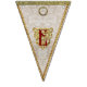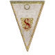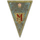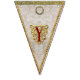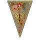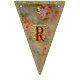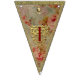 A set of sixteen durable indoor/outdoor, easy-wipe-clean flags look deceptively luxurious in prints of damask silks and linens and a chintz rose print, spelling out the words "Merry Christmas!" Each flag design was created with layers of exceptional details, meticulously placed. Print visuals are reminiscent of the ornate gold foil trim borders, beautifully-embossed golden die cut shapes, and glittery gold flake hand gilding used in handcrafting exquisite Dresden holiday ornaments. The "fabrics" in this bunting banner coordinate with our Dresden Angels product line, including our Dresden "Chinoiserie" and Dresden "Lordly" Christmas stocking designs. Find them all in the Cheeky_Poppets store.