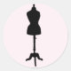 This silhouette of a Victorian style dress form on a a pale pink background is a great choice for seamstresses and fashion lovers alike.