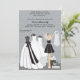 Plain white envelopes are included with paper invitations and will come to fit the invitation size you select. If you don’t need the envelopes, you may choose to not receive them by selecting the dropdown below "Envelopes" and choosing "None." If you’d like to have a design on your envelopes, you can browse all of these available envelopes to find the design that complements your Dresses Invitation.