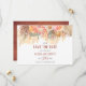 Tropical dried palm leaves, pampas grass and protea flowers terracotta botanical Save the Date flat card. This lovely wedding design a garland of dried palm leaves, protea flowers and pampas grass.