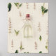 Dainty dried herbs and leaves set out artistically around a glass bottle with cork stopper. This artful arrangement is on a light beige burlap texture background, giving it depth and movement. A unique cottagecore green witch aesthetic print.