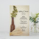 Customize the rustic Dried Hops and Wheat Brewery Wedding Menu with the details of the meal that you will serve at your beer theme bridal shower luncheon, post wedding brunch or marriage reception dinner by adding the salad or first course, entree or second course and dessert or third course. Personalize it with the names of the bride and groom, event venue and date. This charming custom wedding menu features a photograph of a brown glass beer bottle, dried white, dried green hop vine and white bridal veil. Perfect inspo for the couple who will be serving craft beers or micro brews at their gathering.