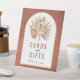 Tropical dried palm leaves, pampas grass and protea flowers terracotta arch botanical cards and gifts wedding Pedestal Sign. This beautiful wedding design features an arch frame on terracotta stained background. In the frame there is your text, a bouquet of dried palm leaves, protea flowers and pampas grass.