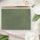 Tropical dried palm leaves, pampas grass and protea flowers sage green fall wedding envelope. This lovely wedding design features a green pink colored stained background on the outside. The inside includes a bouquet of dried palm leaves, protea flowers and pampas grass.
