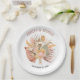 Tropical dried palm leaves, pampas grass and protea flowers terracotta fall wedding paper plate. This lovely wedding design includes a bouquet of watercolor dried palm leaves, protea flowers and pampas grass.