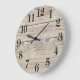 The clock is awesome. My kitchen is decorated with a weathered beachy look and this clock complements the kitchen design perfectly. Looks just like a driftwood beach sign. Product was delivered right on time. Not applicable -- didn't have anything printed on the clock.