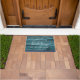 Modern, chic brush script reading WELCOME TO OUR BEACH HOUSE in a trendy typography driven design. Great custom beach house decor for your home away from home. Both romantic and stylish, our turquoise printed driftwood door mat features a sweet shell illustration between your location and the year established.