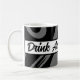 Tell those around to "drink and talk less" with this funny coffee mug. Edit options are available.