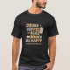 My 11 yo wore adult XL (5’7” 165#). The 8yo is small framed. She wore adult small and tied it in the back. Grandma wore adult large with long sleeve shirt underneath. Tall girl adult medium. Dark haired male adult large. Good quality dark Heather gray, Gildan brand shirt. -it was next up from basic choice and cost about $20 per shirt. Not too thick or thin. Washed and dried well, no major shrinkage. Not see-through. Can wear a bra under it fine. Screen print is just as shown and well done, front and back.