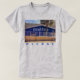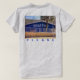 Drink COFFEE sleep later - In worn white letters on a cobalt blue background painted on a brick wall, the sign in the original photograph by ZoeSPEAK on this T-shirt for coffee lovers says it all. The little shop, with a palm tree in front and a thatched roof behind, is basking in the afternoon sunlight. Under the Coffee photo is the word PLEASE (meaning yes, I’d like some coffee!).