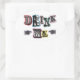 Oval white sticker with an image of the phrase “Drink Me” in colorful, old-timey block lettering and two hands, each with a finger pointing at the word “Me.” See matching favor tag. See the entire Wonderland Sticker collection in the INVITES | Stickers & Labels section.