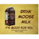 A milk carton from world famous and entirely mythical Matanuska Moose Milk dairy farm in Willow Alaska; not too far from Anchorage. The slogan "Drink Moose Milk" also appears. The logo image features a milkmaid hand milking Matilda, the farm's first dairy moose. Believe it or not there are moose dairies; a small number in Russia and one in Sweden. Moose milk is commercially farmed in Russia. A farm-born moose calf is taken from its mother within 2–3 hours after birth and is raised by people. It is first bottle-fed with a milk substitute, and later fed from a bucket. The animals imprint and become attached to humans. The milk is high in butterfat (10%) and solids (21.5%), according to data collected on Russian moose; research into American moose milk is in a less advanced state than in Russia, but appears to indicate that American moose have even higher concentrations of solids in their milk. Moose milk is said to be a bit salty and bitter; with a hint of pine or spruce needles. Moose milk is commercially farmed in Russia. A farm-born moose calf is taken from its mother within 2–3 hours after birth and is raised by people. It is first bottle-fed with a milk substitute, and later fed from a bucket. The animals imprint and become attached to humans. As with dairy cattle, calves are removed from their mothers after a short time.The Russians say moose soon recognize the milkmaids as their substitute as her substitute calves. At this point they are released to the forest; but visit the farm every day to be milked during the lactation period (typically, until September or October). During winter the animals roam free throughout the surrounding forest. But they usually do not stray too far, but spend much of their time at nearby woodlots where trees are being cut, feeding on the byproducts of timber operations. And they know the farm as the place for a daily rations of oatmeal, and as a safe place to give birth to their young. One Russian sanitorium serves moose milk to residents in the belief that it helps them recover from disease or manage chronic illness more effectively. Some Russian researchers have recommended that moose milk could be used for the prevention of gastroenterological diseases in children. The Elk (Moose are called Elk in Europe) House (Älgens Hus) farm in Bjurholm, Sweden is believed to be the world's only producer of moose cheese. The cheese sells for about 500 dollars per pound. Algens Hus' restaurant offers moose-cheese dishes. Cheese plain with bread or biscuits, or better yet, frozen moose mousse. Best served with raspberries.