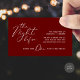 Rehearsal Dinner Wedding drink ticket, adult beverage ticket, in Modern minimalist , with title "the night before", classy romantic burgundy wine red theme designs.