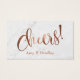 Offer your guests some complementary libations with these elegant drink tickets. On one side you read "this one is on us" and "Good for One Adult Beverage" and on the other side is "Cheers!" and a template place holder for your names. Non-editable text graphic overlays are rendered in a beautiful calligraphy script font with swirls and flourishes. To this text I've added a trendy faux copper foil effect. Other text appears in a versatile serif font in a complementary color; it can be edited if you prefer. The background is an image depicting of a subtle white and gray marble surface. Please do not hesitate to reach out if you have requests or need customizing assistance. // 57 //