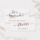 Offer your guests a free cocktail or two with these elegant drink tickets. On one side you read "let us buy you a drink" and "Good for One Adult Beverage" and on the other side is "Cheers!" and a template place holder for your names. Non-editable text graphic overlays are rendered in a beautiful calligraphy script font with swirls and flourishes. To this text I've added a trendy faux rose gold foil effect. Other text appears in an all-caps serif font in a complementary color; it can be edited if you prefer. The background is an editable white; you may change this to any color you prefer, if you wish a change. Please do not hesitate to reach out if you have requests or need customizing assistance. // 86 //