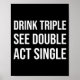 Drink Triple See Double Act Single - Funny Drinkin Poster