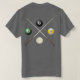 A double sided pool shirt with a humorous slogan on the front and pool related picture on the back.