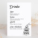 Elevate your wedding or special event with this elegant black-and-white drink menu featuring a champagne tower illustration. Perfect for modern couples seeking a minimalistic yet sophisticated touch, this menu lists beer, wine, spirits, and non-alcoholic options in stylish fonts. Customizable text makes it versatile for weddings, rehearsal dinners, or any celebration. Its timeless design fits seamlessly with various themes, ensuring your guests have a chic, memorable experience. Pair it with other coordinating stationery for a cohesive look.