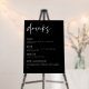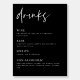 Modern minimalist bar list, wedding sign. Trendy typography design style template in white text on black background.