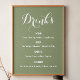 Drinks Bar Menu Sign Banner Poster with sage green background for wedding, rehearsal dinner, bridal shower, engagement or any similar occasions. Check out our store collection below for matching items. If you need a different shape, paper style, choose the same under personalize this template option,