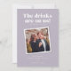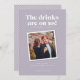 This funny wedding save the date card features the phrase "The drinks are on us - the hangover is on you" - sure to give your guests a laugh and a preview of the fun wedding party they won't want to miss. Customize it! Change the colors and fonts to match your wedding style!