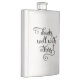 This funny flask features a fancy script font and stylized wine glass. Drinks well with others.