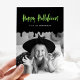 Send spooky Halloween greetings with this eerie photo card featuring “Happy Halloween” in lime green hand-lettering. The top of the design showcases speckled black “blood” dripping over your personalized photo for a creepy, horror-inspired touch. Add your name to the front for a unique finish. The back of the card displays a matching speckled black background, creating a bold and cohesive Halloween design.